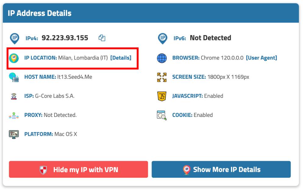 You can verify your new IP address by visiting a website like “https://iplocation.net” to confirm that it reflects the server location you chose.