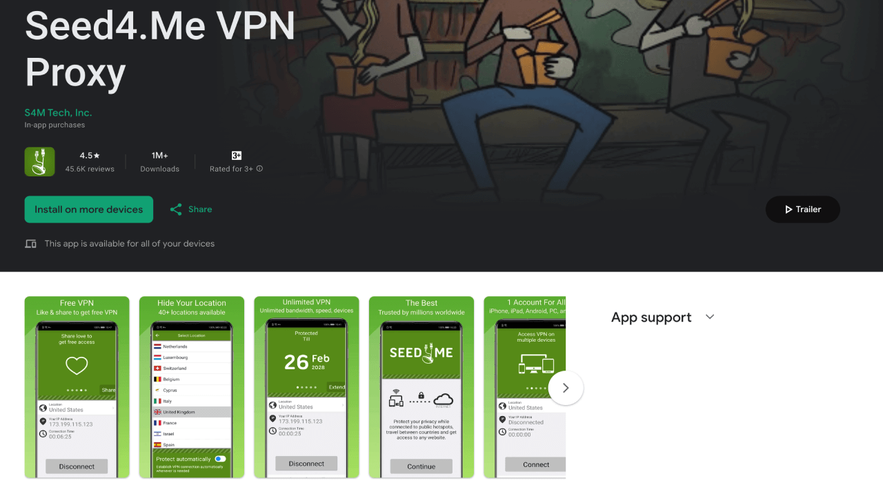 You can download Seed4.Me VPN App for Android devices from Google Play using this link:
