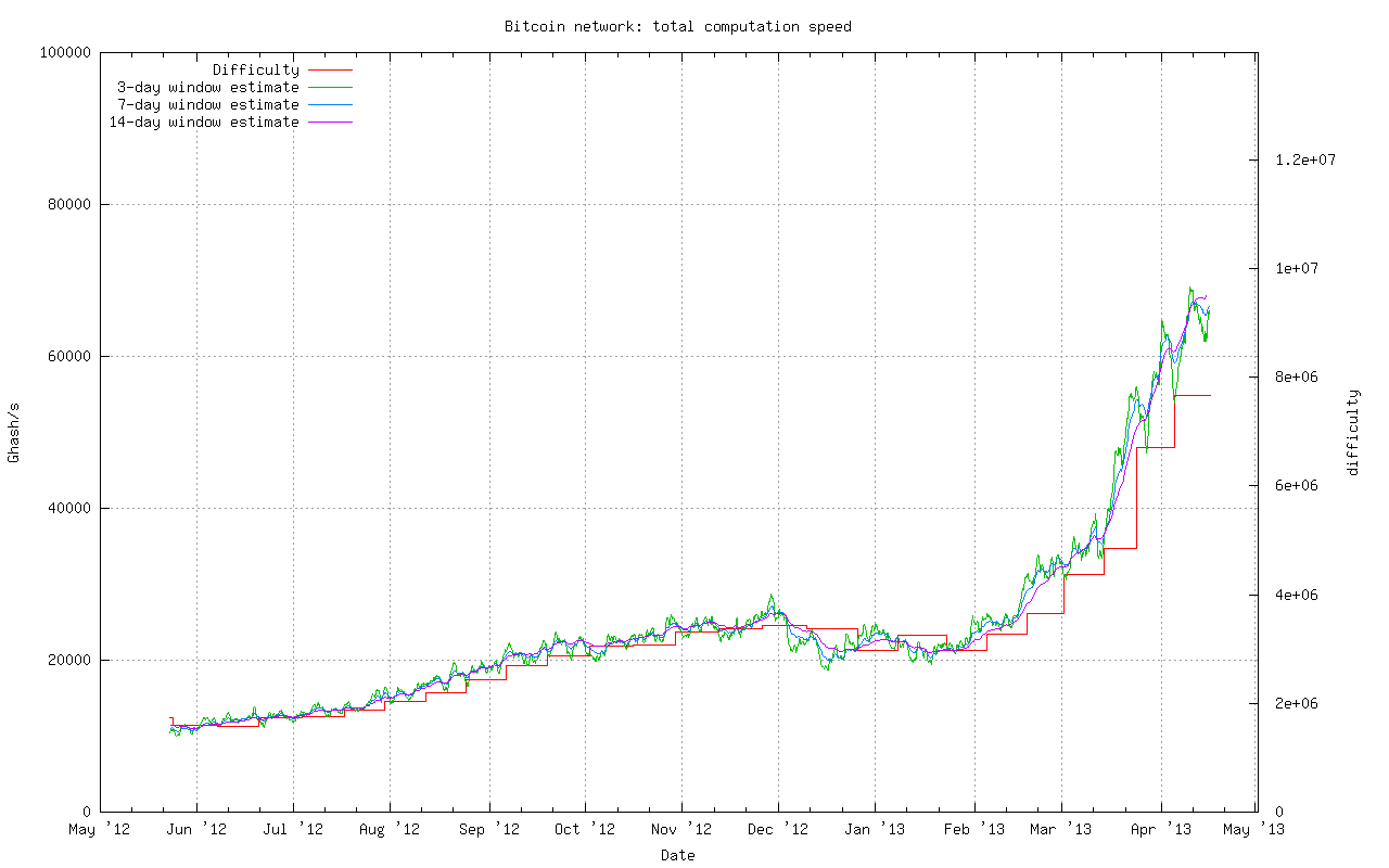 Another possible fluctuation reason could be a high demand due to growing popularity and sharp fall due to increase of computational power. Huge pick of Bitcoin difficulty is an evidence of the fast growing computational power. Recently real SOC solutions became available for Bitcoin mining and it explain the fall, but still it is hard to explain 10 times price growth by popularity, so let’s find another reason.